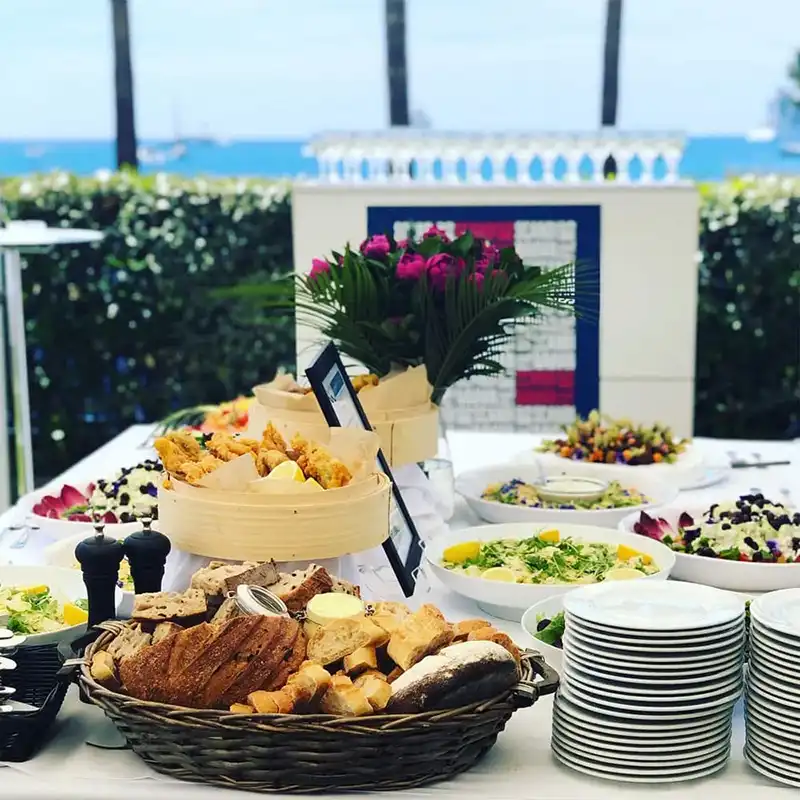 - Buffet déjeuner formule barbecue avec brochettes de crevettes épicées et salsa de tomates en morceaux, focaccia de courgettes grillées et ricotta à l’huile de basilic, salade végétarienne d’avocats avec lentilles béluga, citron vert et piment